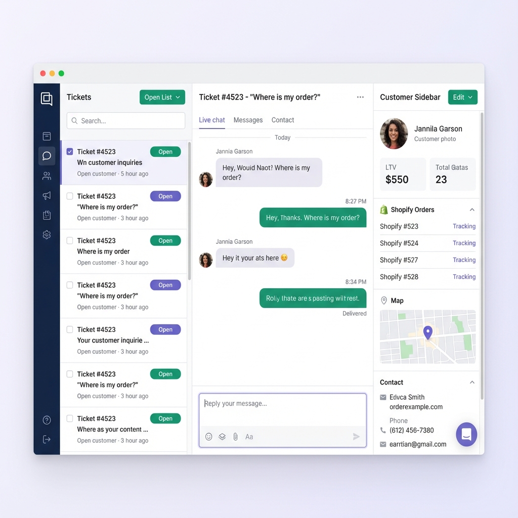 "Where is my order?" (WISMO). A huge chunk of your customer support tickets are repetitive questions: "Did my order ship?", "Can I change my address?", "How do I return this?". Answering these manually wastes your team's time and delays responses to actual problems (like a damaged product). Using a generic helpdesk (like Zendesk) is okay, but it doesn't "talk" to your Shopify/Amazon store, so agents have to switch tabs 50 times a day to look up order numbers.
