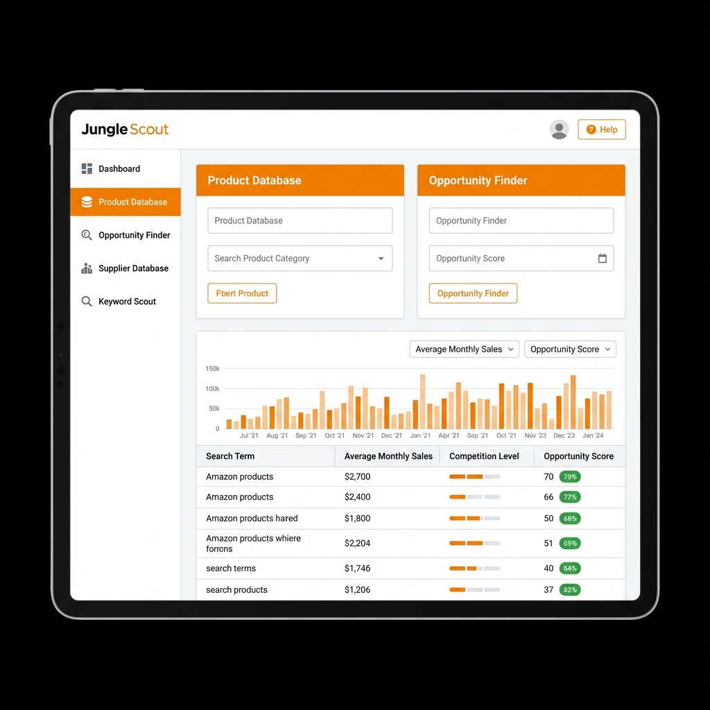 Jungle Scout is specialized in Validation. While Helium 10 is an all-in-one suite, Jungle Scout focuses heavily on helping you find the right product and the right supplier. Its Opportunity Finder visualizes data over time, showing you if a niche is a seasonal fad or a long-term money maker.