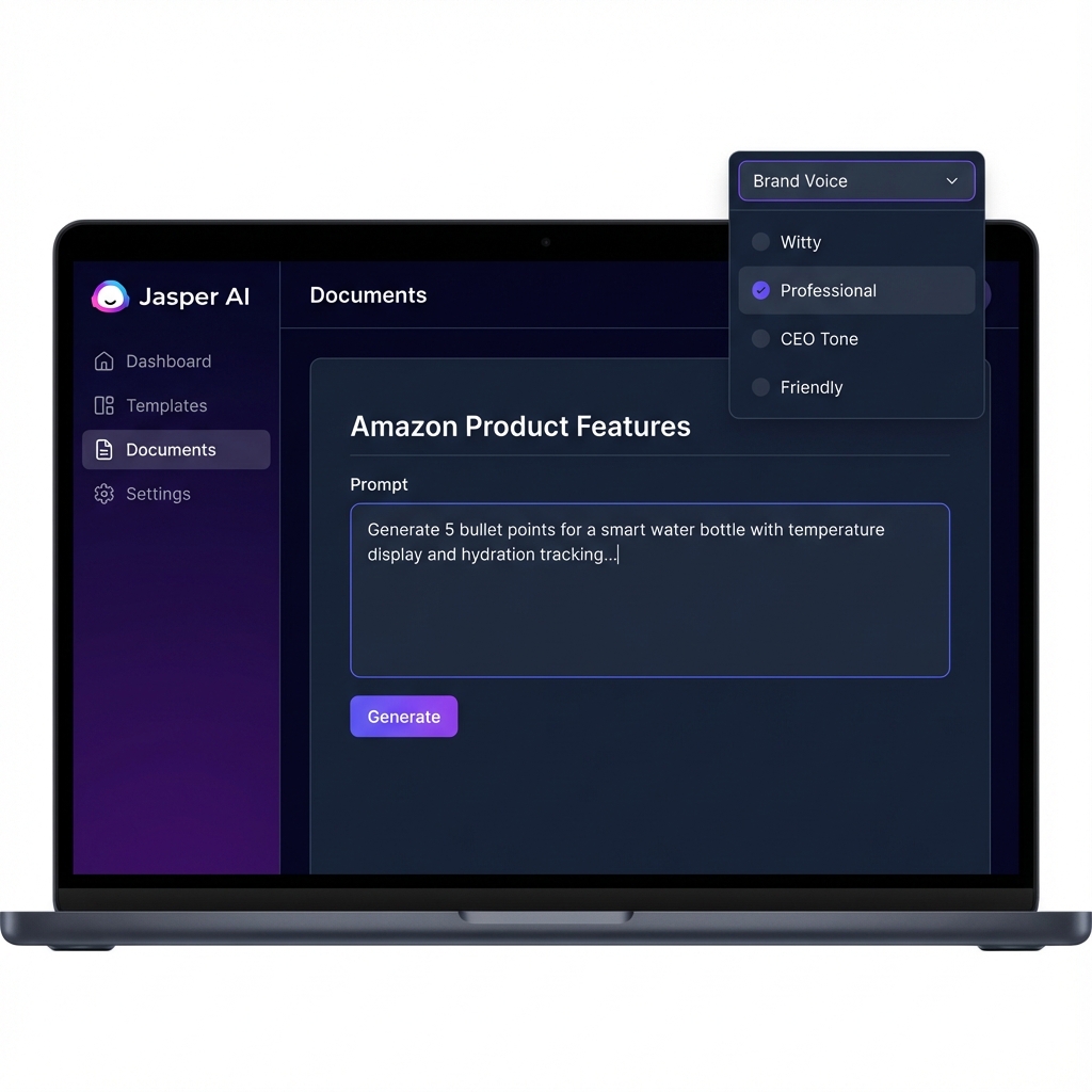 Jasper (前身是 Jarvis) 是专为企业营销绩效而生的 AI。 它的超能力是 Brand Voice Memory (品牌语调记忆)。你可以上传你过去的高赞博客、"关于我们"页面,或者内部风格指南。Jasper 会分析你的语调(比如“机智、共情、权威”),并将其应用到它写的所有内容中。 它不仅仅是一个聊天机器人;它是一个拥有 50+ 个预训练模板的工作流工具,专攻特定的营销任务。